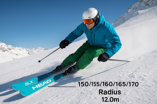A rádius? Nejde jen o smyšlené slovo. Jedná se o číslo, které udává poloměr oblouku, které lyže samy vykrojí při optimálním zatížení. Je udávaný v metrech a čím je číslo menší, tím snáze lyže zatáčejí. U dětských lyží se nejčastěji setkáte s rádiusem 6-10 m, přičemž u lyží pro dospělé se pohybuje v rozmezí 13-18 m.